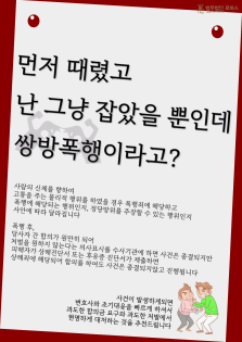 먼저 때렸고 난 그냥 잡았을 뿐인데 쌍방폭행이라고? 사건이 발생하게되면 변호사와 초기대응을 빠르게 하셔서 …