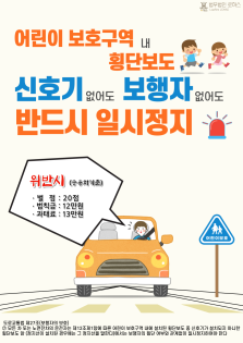 어린이 보호구역 내 횡단보도 신호기 없어도 보행자 없어도 반드시 일시정지 도로교통법 제27조(보행자의 보호) …
