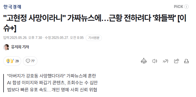 [법무법인 로하스 박무궁 책임변호사 인터뷰 발췌][한국경제] "고현정 사망이라니" 가짜뉴스에…근황 전하려다 …